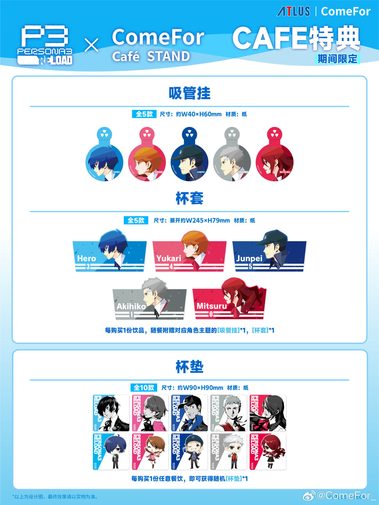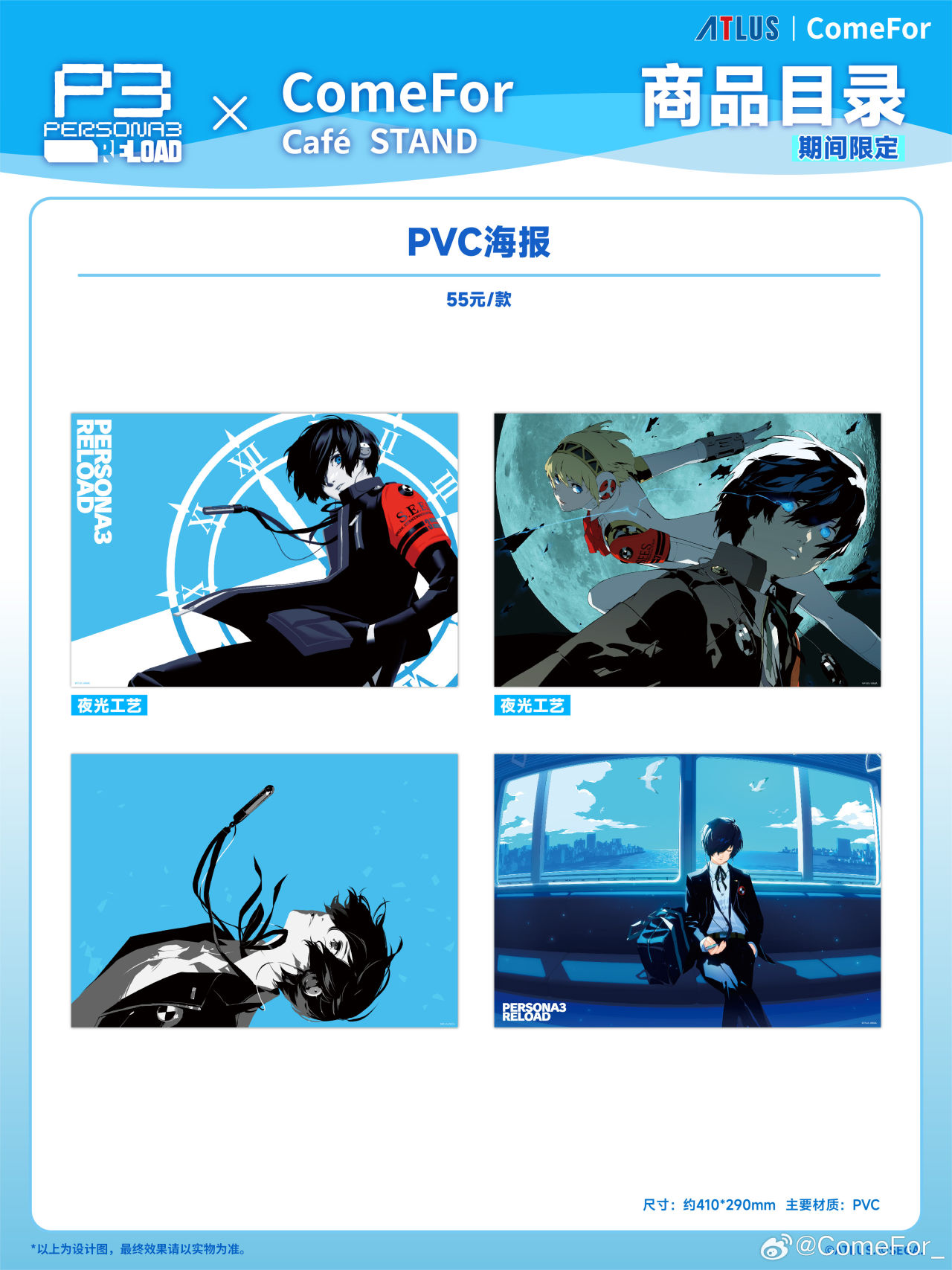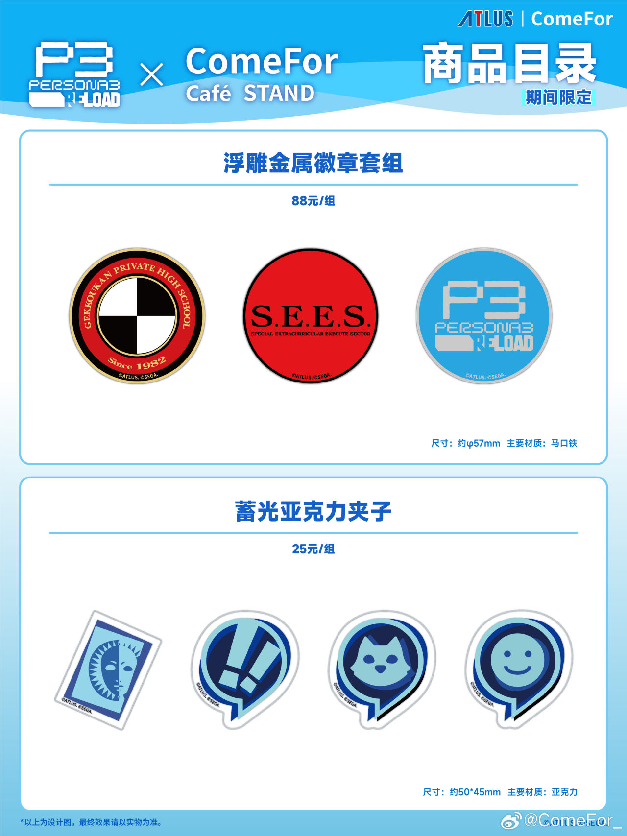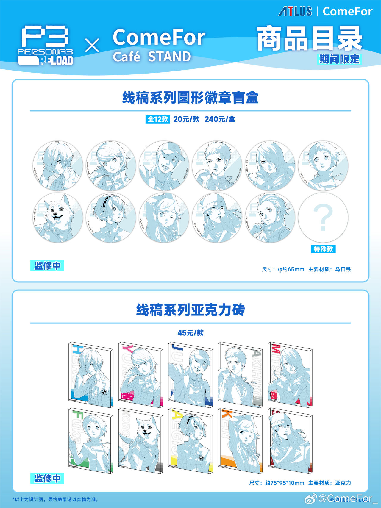 今日,ComeFor官方公布P3R主题限定Café全新周边&商品活动详情(第一弹商品目录)。