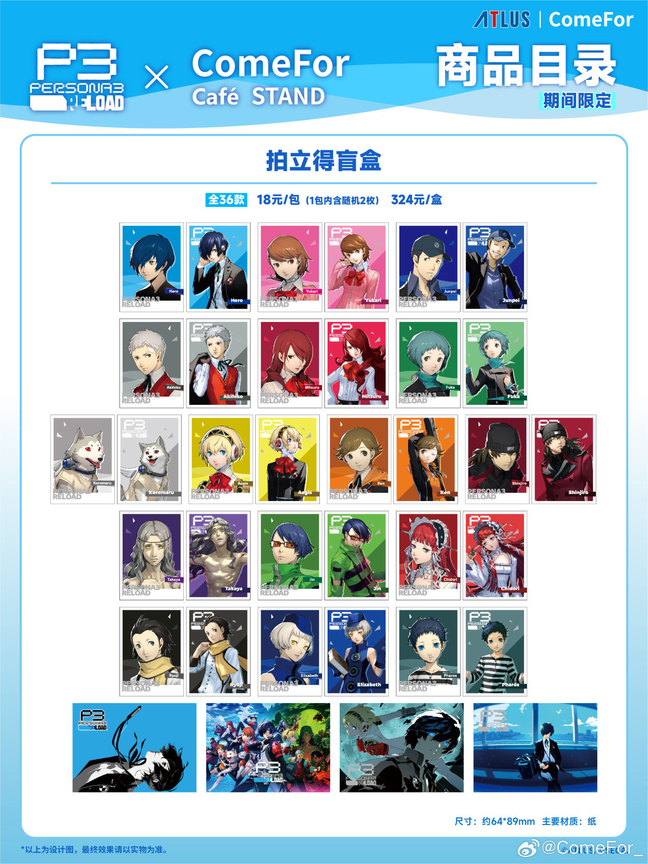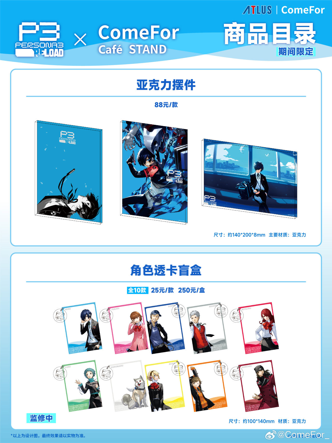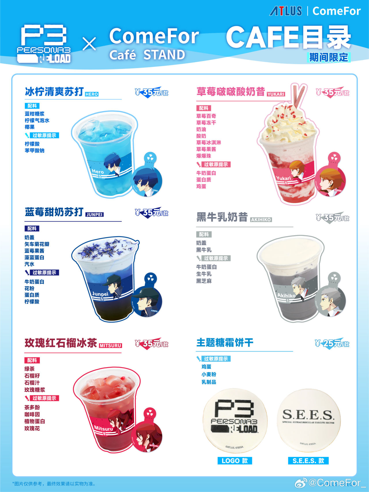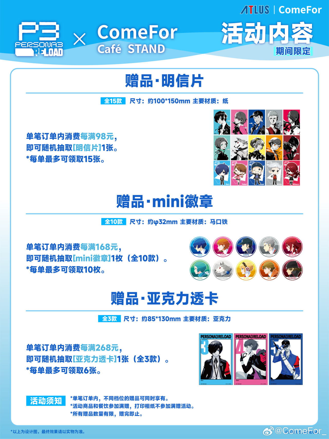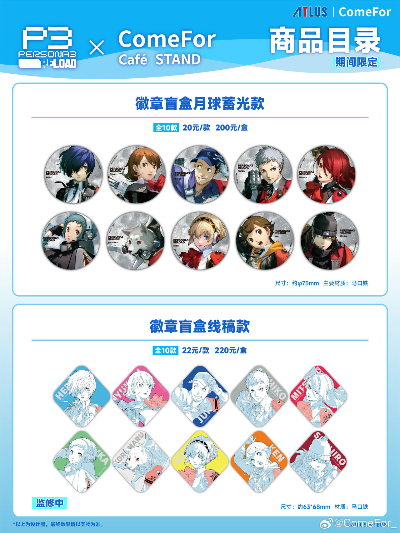 今日,ComeFor官方公布P3R主题限定Café全新周边&商品活动详情(第一弹商品目录)。