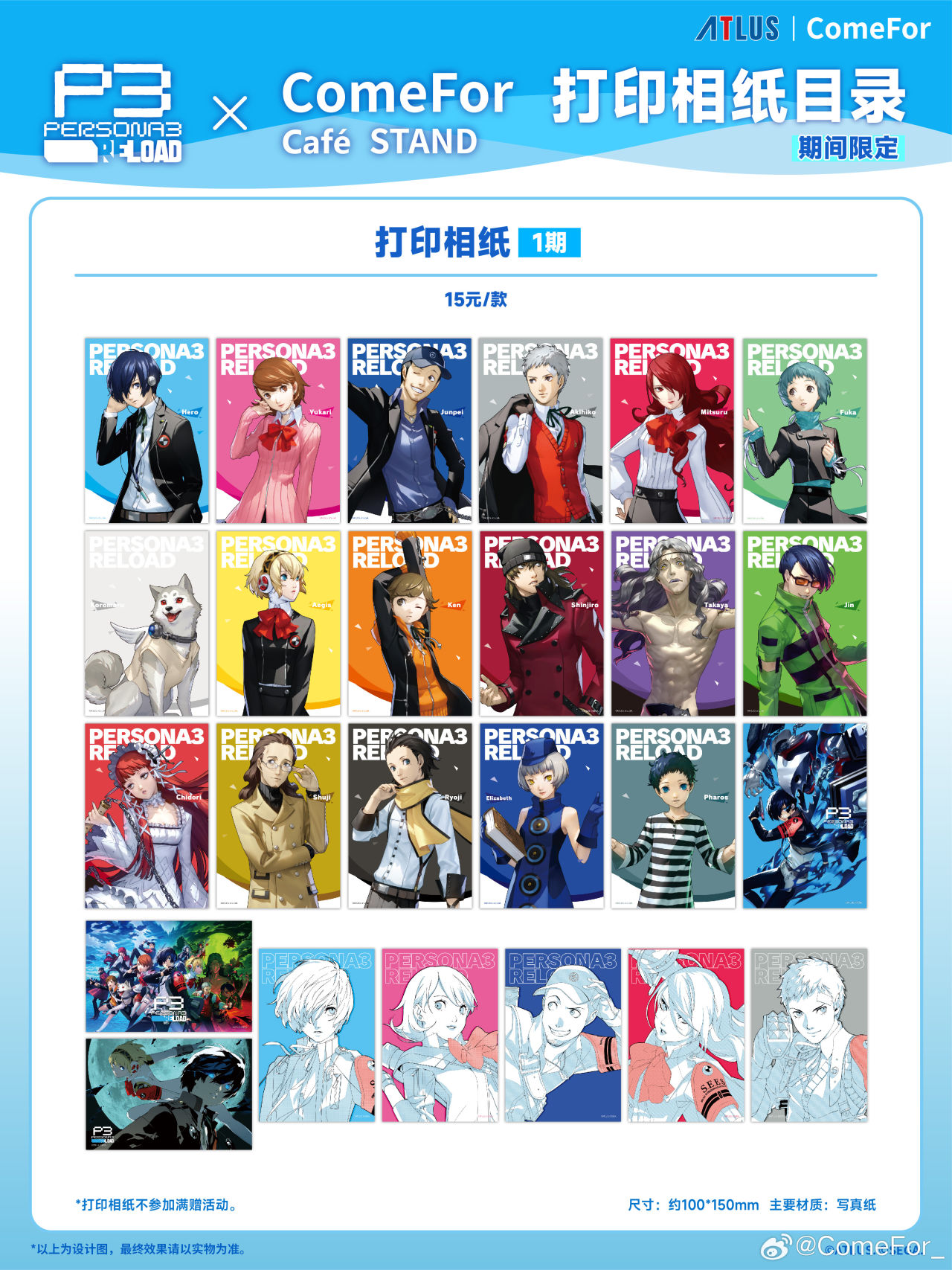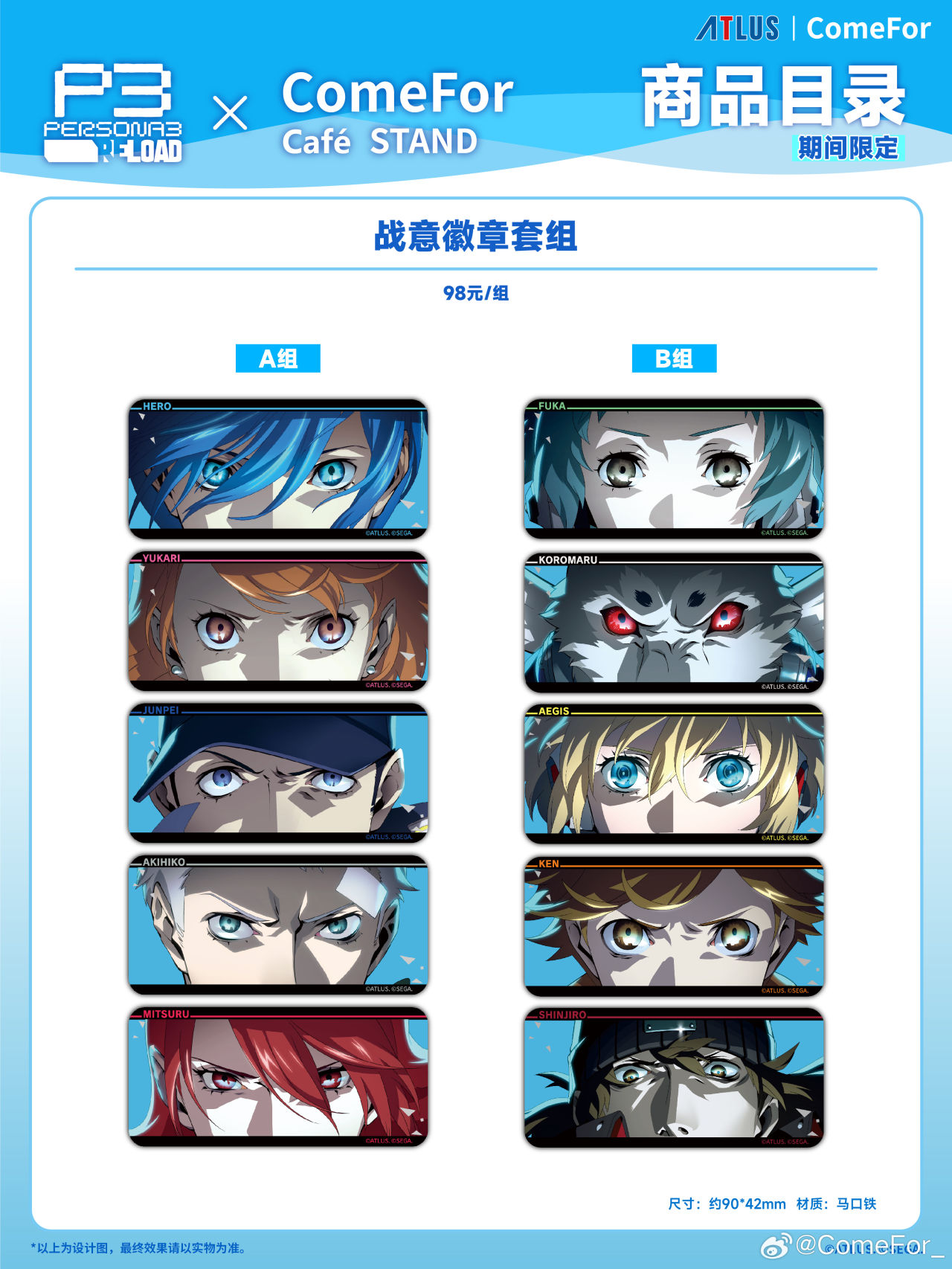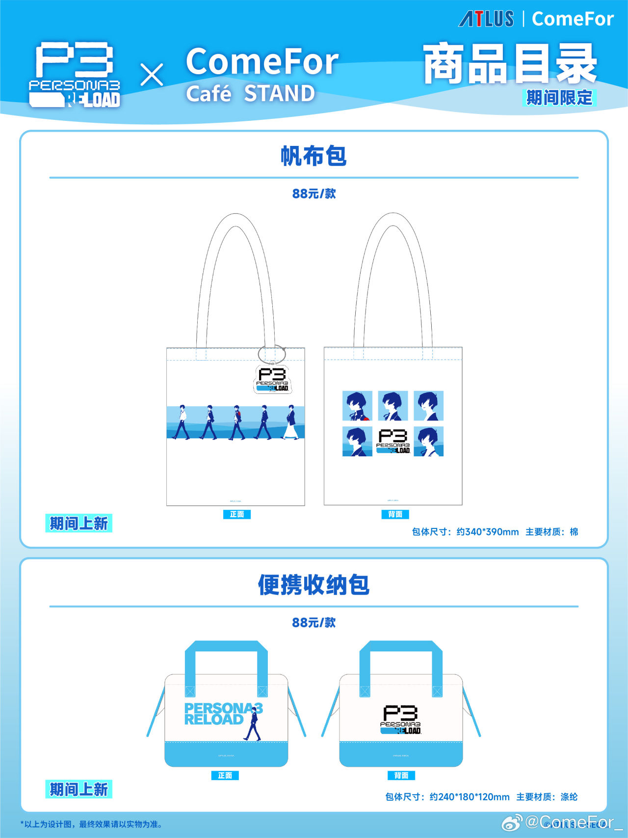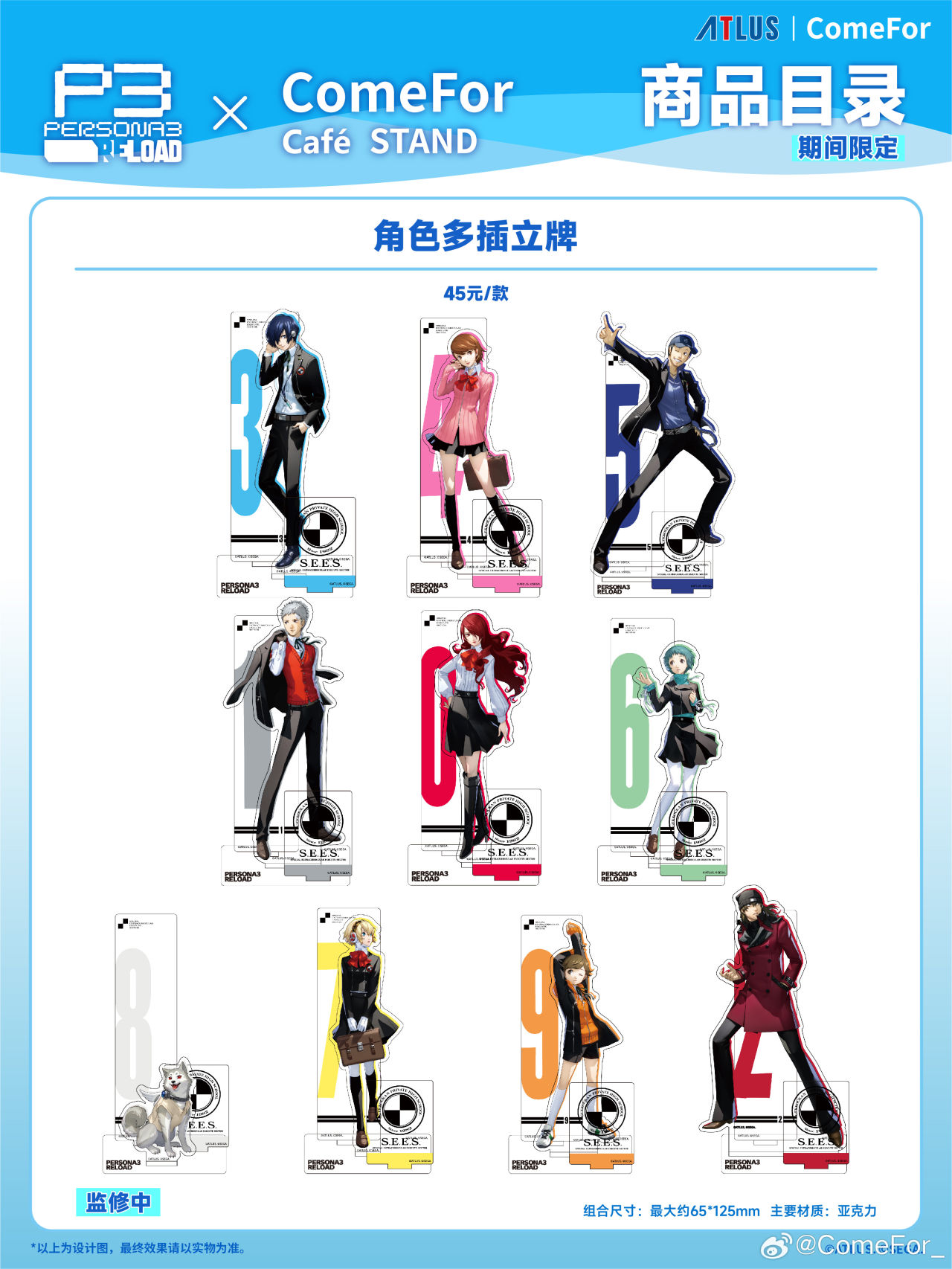 今日,ComeFor官方公布P3R主题限定Café全新周边&商品活动详情(第一弹商品目录)。