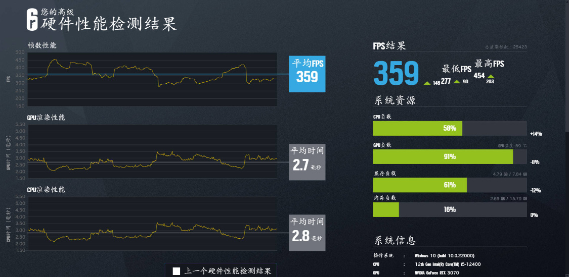 《彩虹六号·围攻》基准测试,2K分辨率,超高画质游戏平均帧率为359FPS;