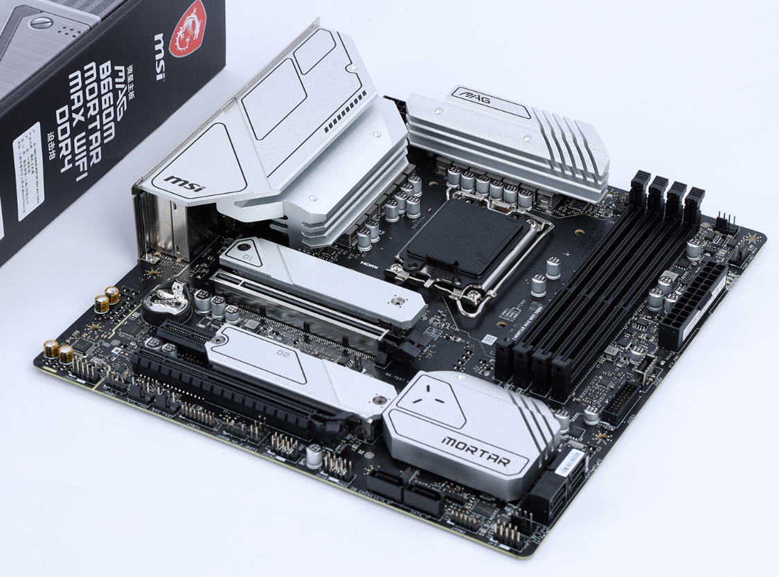 i5的最佳拍档,当然得是B级别主板,运气不错,搞到一块可以超外频的微星B660M MAX迫击炮主板,颜值顶流,12+1+1的供电配置也完全能够拿捏非K的12代酷睿全系处理器。