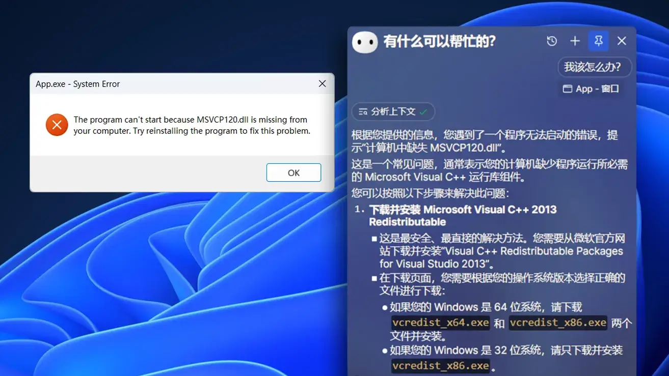 即时问题解答 在出现错误信息或技术问题时,AI 会分析上下文并提供解决方案。