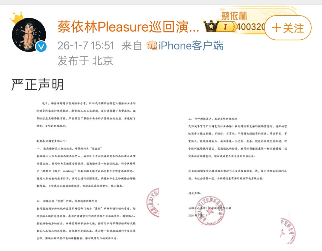 此前主办方已发函谴责恶意造谣并启动法律程序,表示这已非简单的网络探讨,而是对集体心血的诋毁与践踏。「PLEASURE」巡演始终秉持着分享愉悦正能量的原则面向社会,团队经一年半全力倾注于舞台的心血与创造近日却遭恶意曲解。
