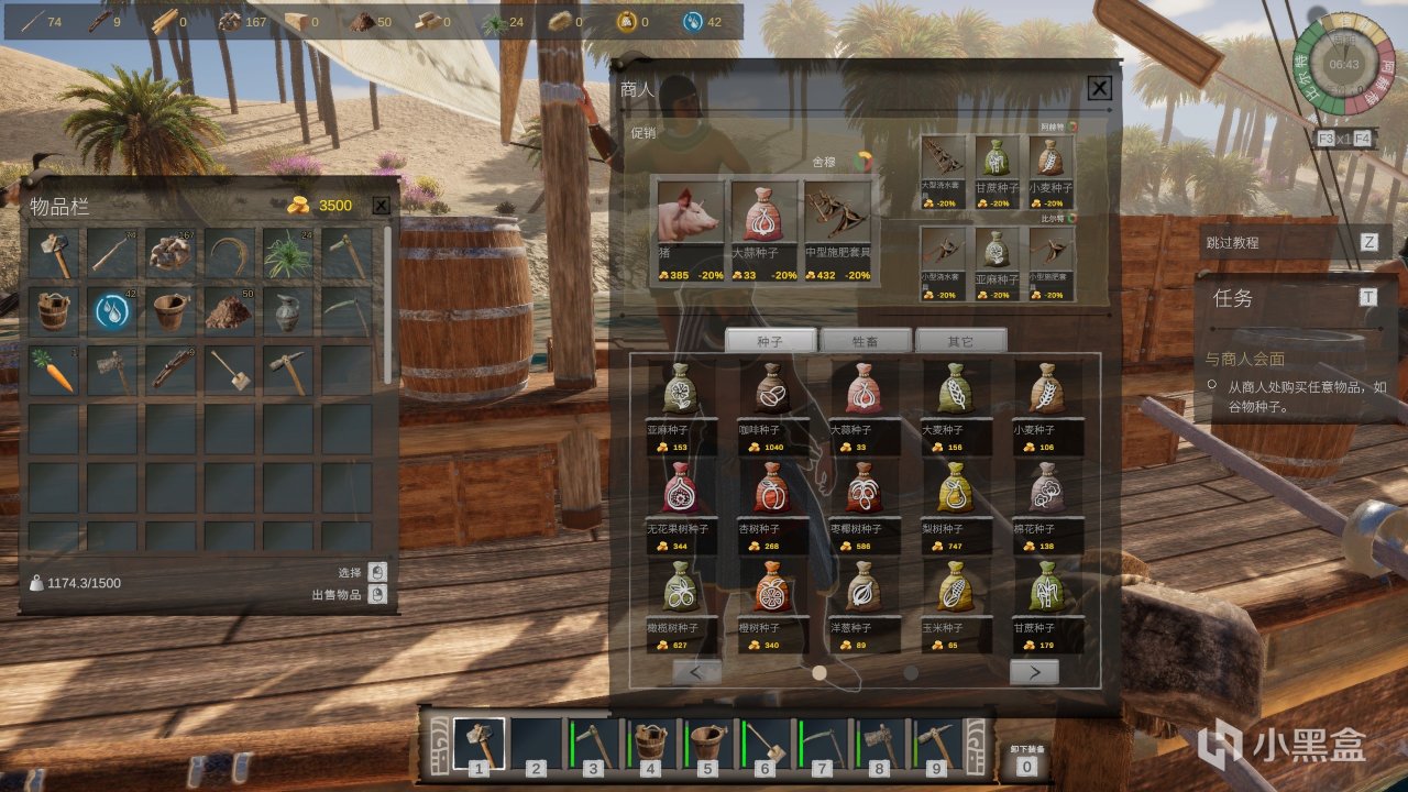 至于作物的挑选算是比较麻烦的部分了,需要我们去商人处买种子,一定要注意种子可以播种的时间,播种时间和生长时间是两个东西,第一次我看错了就直接买了一堆不好活的作物,而且这游戏还只有一个档位,没办法我就把东西卖了回去重新买的新作物。游戏里有三个季节,分别是比尔特、舍穆、阿赫特,每个季节只有一部分作物适合耕种,三者的持续周期还不一样长。最方便的其实是种果树,一年四季都可以,但是果树成熟的太慢了,所以还是农作物比较好,但一般一个季节内只能种一次某些作物,这些作物对于完成任务和以后的食谱还比较有用,所以尽量还是留下来一些,不要全都卖掉。