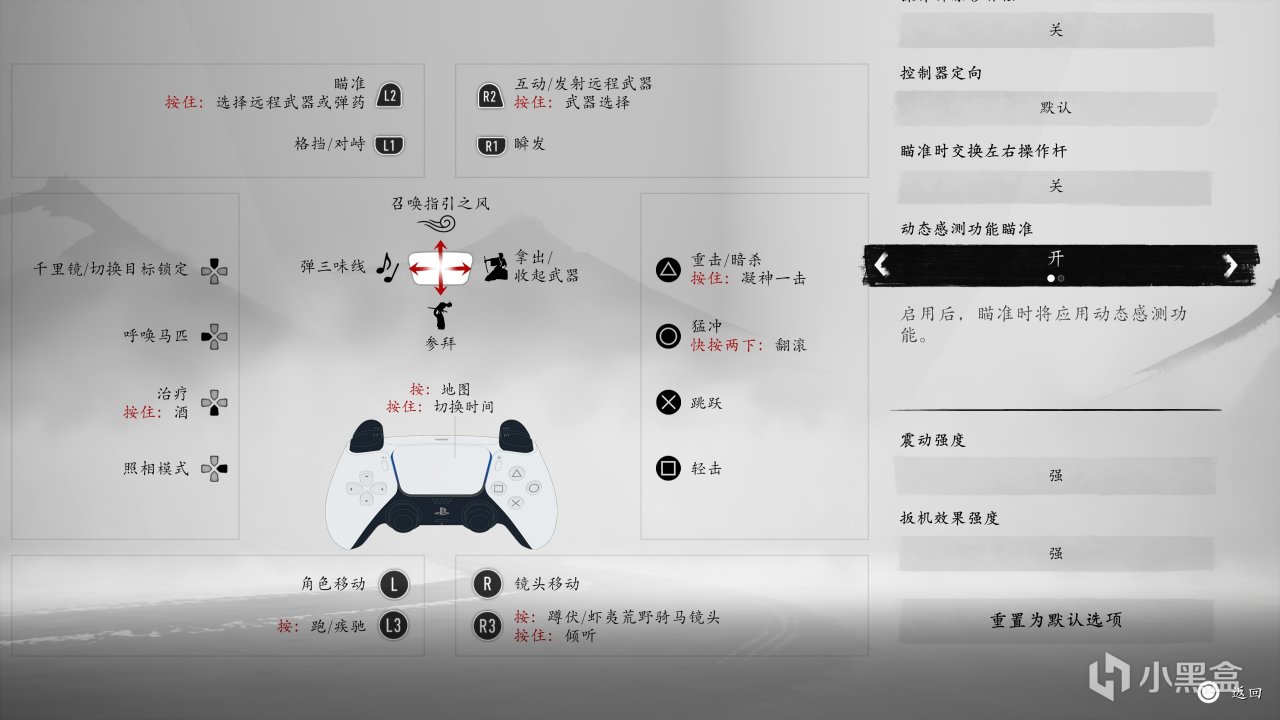 其次,弓箭瞄准体感开关也是我非常喜爱的一个东西。可能很多习惯PS5手柄玩射击游戏的玩家不需要这个,但我一个习惯了塞尔达NS手柄射箭瞄准的玩家真的十分需要体感瞄准!曾经《对马岛之魂》《神秘海域4》就十分遗憾没有这个功能,这次的《羊蹄山之魂》总算给了我这个机会,远程体验直升MAX。