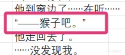 在我正在開發的中式恐怖遊戲劇情裏,有幾句臺詞大意是:一位角色被窗外的猴子吸引了注意力。