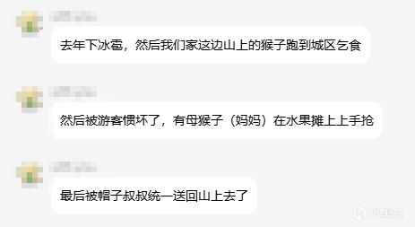 後來在羣裏聊起了這個話題,看到大家提到類似的情況 :靠山的地區,猴子搶遊客、公路霸路、其實也並不少見。