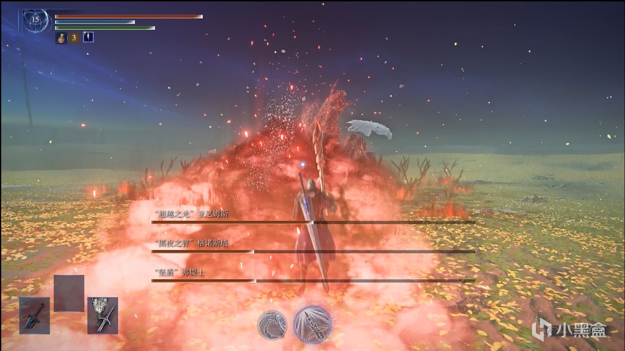 一是魔法弹,从6个变成12个,还是两波发出,但这次是较为快速的,同一波之间不会有太大错落,所以看到6个分裂成12个后向你飞来时翻滚即可(远处可以跳躲,但时机要注意,因为速度较快,所以不太建议)