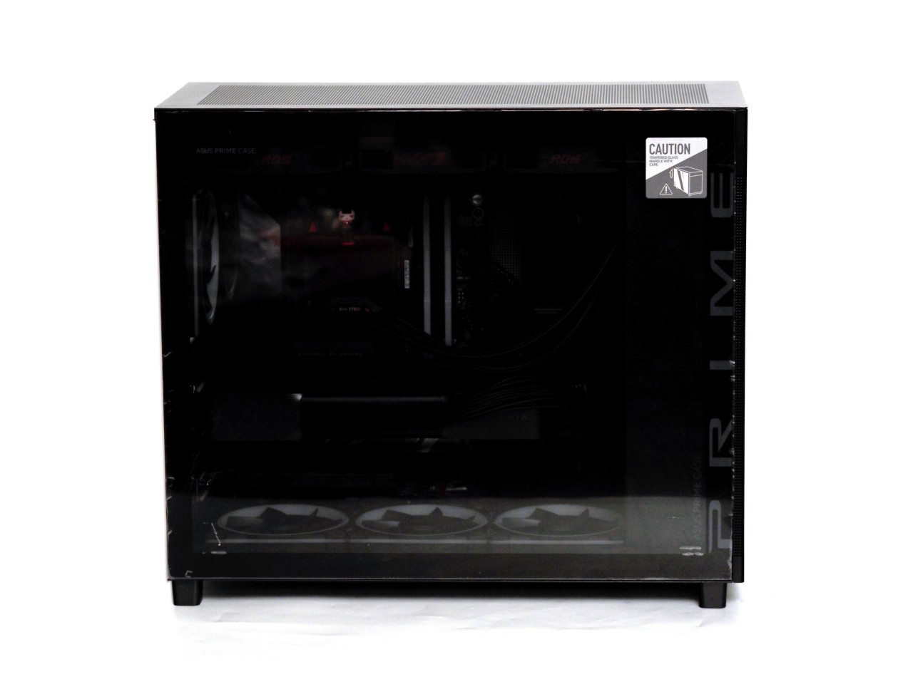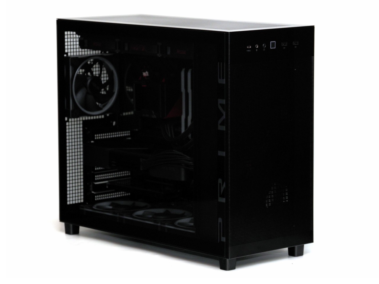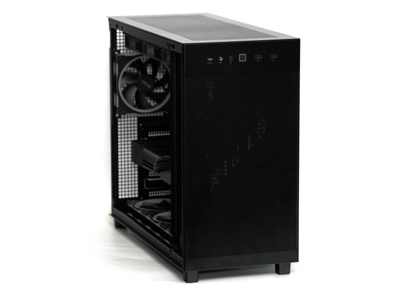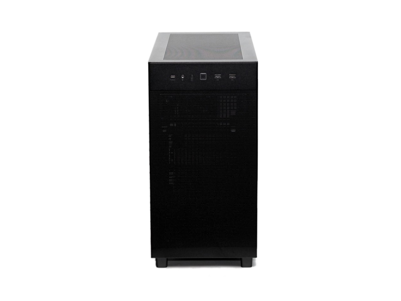 因此机箱思来想去,决定来一波返璞归真,主打一个散热为主颜值为辅,华硕的AP303冰立方ATX。之前的AP201就是MATX机箱里的散热能手,全是洞洞,但是作为MATX机箱来说有点偏大,这次的AP303在201的基础上略微增大了一点点支持了ATX主板,体积一下就显得很合适了,算是比较小巧的ATX机箱,同时依然保留了洞洞流的强大散热能力: