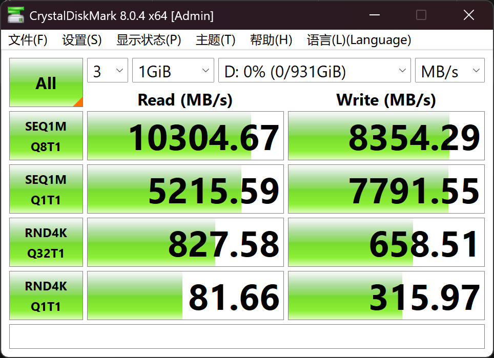 换了ATX主板,终于有机会重新用上当年的硬盘之王傲腾了,于是也专门找了个普通的PCIE 5.0硬盘海盗船的MP700Elite,来和PCIE 3.0时代的王中王对比一下,看看这么多年硬盘到底进步了多少: