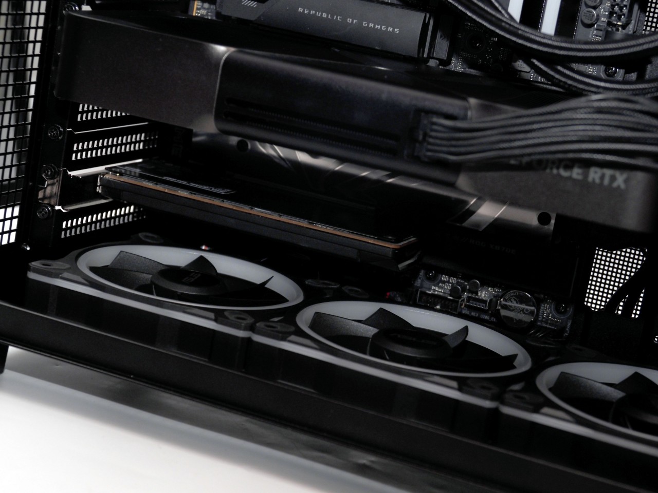 帅是真的帅,贵也是真的贵,比5080FE还重一点点,而且这么小的体积塞个575W,光靠显卡的俩风扇噪音必然十分感人,毕竟物理法则无法违背,还是得靠机箱辅助: