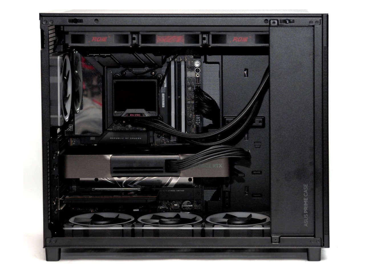 结构上没有啥说的,就是AP201的扩大版,电源前置,然后就是一个大框......四周都是洞洞板,后置一个120,顶部360,下部360,散热能力强大,全免工具拆卸非常好评!
