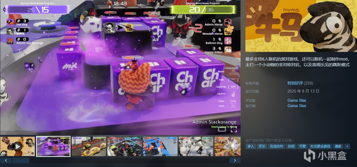 最多支持8人联机的派对游戏,还可以联机一起制作mod,主打一个小动物的非对称对抗,以及喜闻乐见的跳跃模式