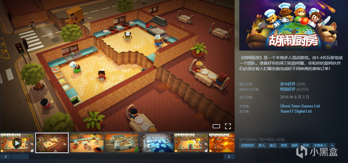 《胡闹厨房》是一个本地多人混战游戏。由1-4名玩家组成一个团队,准备好你的菜刀和厨师服,你和你的厨师伙伴们必须在客人们爆发前完成好不同种类的美味订单!