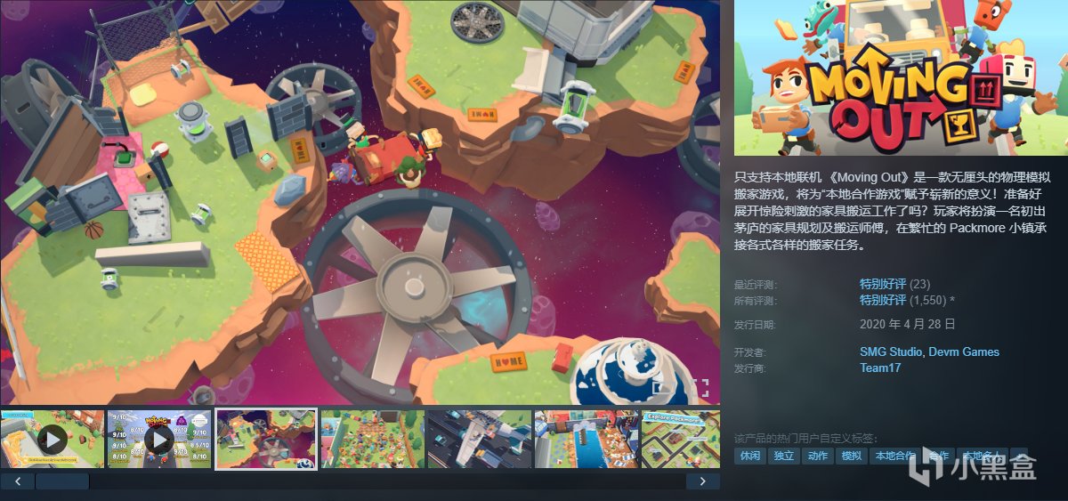 只支持本地联机 《Moving Out》是一款无厘头的物理模拟搬家游戏,将为“本地合作游戏”赋予崭新的意义!准备好展开惊险刺激的家具搬运工作了吗?玩家将扮演一名初出茅庐的家具规划及搬运师傅,在繁忙的 Packmore 小镇承接各式各样的搬家任务。