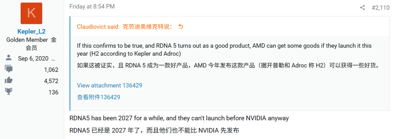 Kepler指出,RDNA 5架构虽长期以2027年上市为目标,但基本确定将在英伟达RTX 60系列之后亮相。若另一位爆料人Kopite7kimi关于英伟达下一代GPU将于2027年下半年发布的传闻属实,AMD新品则可能顺延至2027年末。按照此时间表,AMD或选择在同年台北国际电脑展进行正式发布。此举延续了AMD近年来的市场策略——去年RDNA 4架构正是凭借英伟达定价过高与换代提升有限的市场空档成功切入。公司显然希望在下一代产品线上复制这一策略,根据英伟达RTX 60系列的市场定位灵活调整定价。