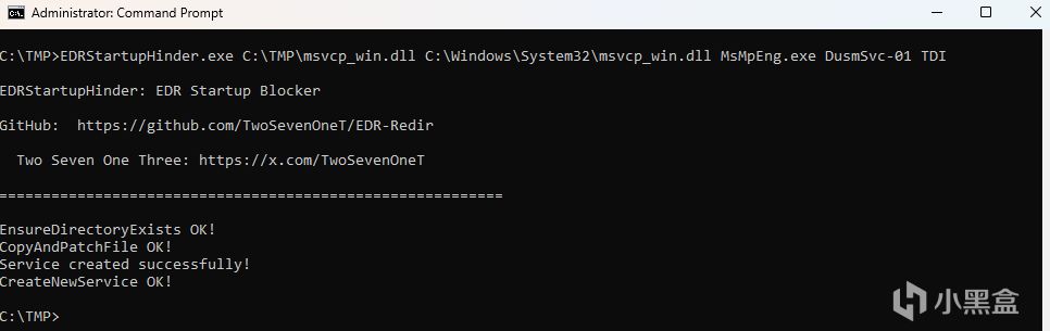 使用EDRStartupHinder阻止Windows Defender启动的命令