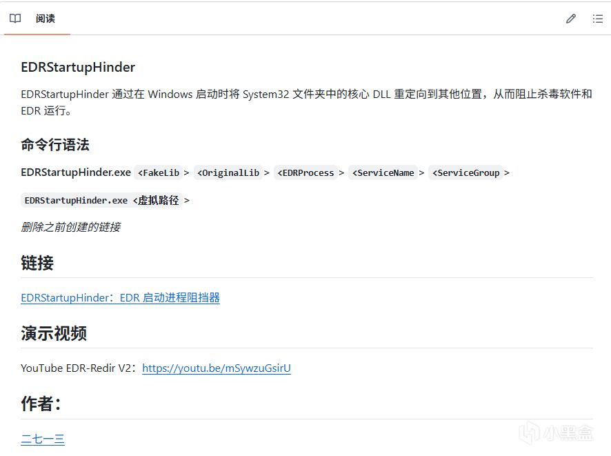 但就在昨天,安全研究员Two Seven One Three公开了阻止杀毒软件的一种新方法,并且给出了成品工具EDRStartupHinder。