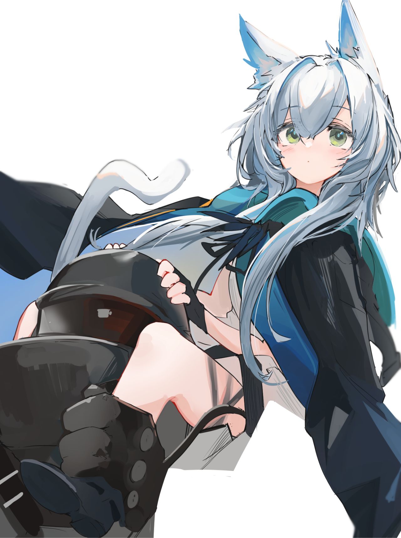 坐是坐下来了,心却静不下来,毛茸茸的猫尾来回蹭着博士的外套,博士甚至能听到静电细小的噼啪声。只是看着这样的迷迭香,不可思议的暖意便从心底源源不断地涌出,“迷迭香是这个世界给予我的救赎吧!”,博士不禁这么想到,迷迭香也注意到了博士扬起的嘴角: