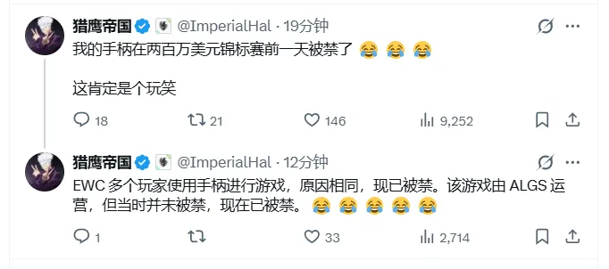 昨晚上手柄圈发生一个大瓜,《Apex》电竞职业选手Hal常用的手柄被官方ban了,原因是手柄的宏功能和app远程控制功能,于是他半夜发帖想办法。由于不少职业选手都在使用相似功能的手柄,于是很多职业选手的手柄都被ban了。