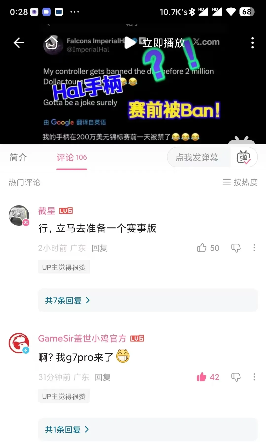 正在致动老板“截星”回复准备一个赛事版的固件的时候,另一个国产品牌“盖世小鸡”马上在下面回复“啊?我G7pro来了”。
