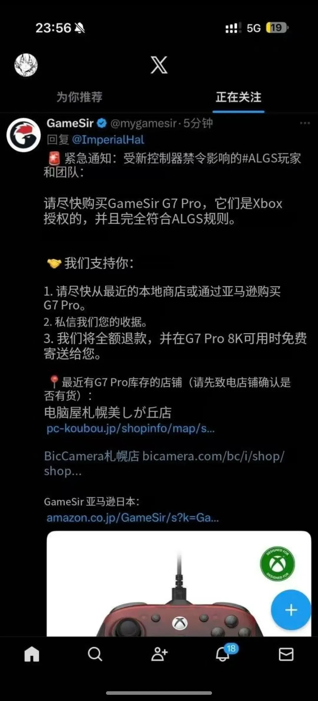 随后,小鸡品牌还在推特上发帖宣传自家新出的Xbox授权手柄,并表示受到影响的选手请尽快从最近的销售点购买他们家的授权手柄,并表示提供发票可以给他们报销。