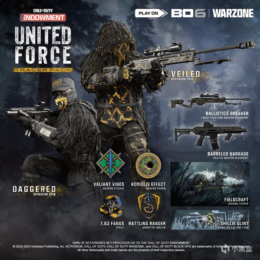 《黑色行動6》的“奮進”C.O.D.E.包和“聯合部隊”C.O.D.E.包限時返場,售價130人民幣/19.99美元,只能在《黑色行動6》和《戰區》中使用,組合包收益將用於爲美國和英國的退伍軍人提供工作。