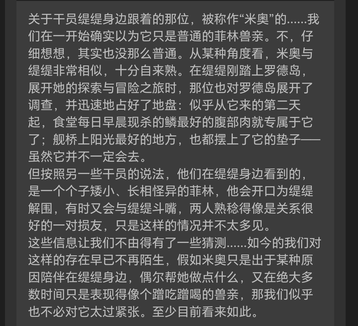 ③米奥来到罗德岛发现一堆同类,仿佛回家了一样,罗德岛干员对这种兽主已经见怪不怪了