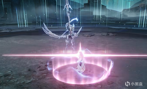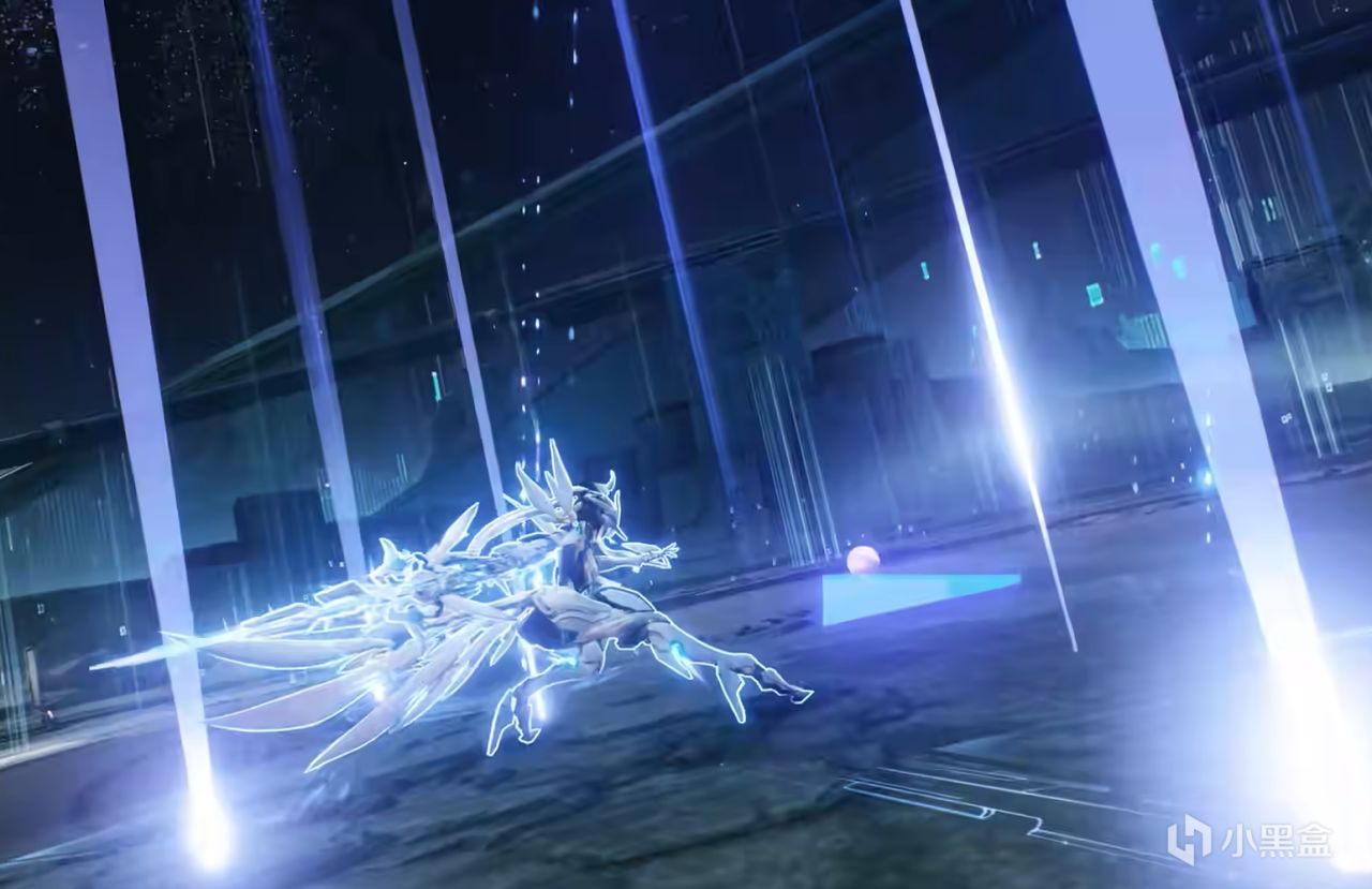 第一段循环中应当是积攒了部分特殊能量,二段循环的技能都有所变化,同样是刺剑起手,这次打完刺剑连段后召唤机甲泰坦陨落,砸击地面,小爱同学Ciallo~从镜头前飘走召唤机甲饱和式光束打击,展示了机甲超绝飞行手感和长时间机甲形态战斗,最后大招拨云见日一刀斩下,飞起来了家人们,不是我飞了,是鸣式和莫宁飞了口牙!