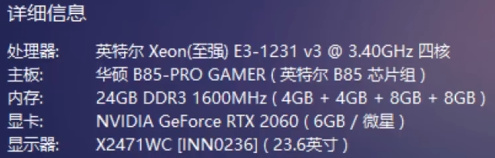 这里也测试看看E3 1231V3 B85主板+2060矿卡组合的实际游玩帧率。