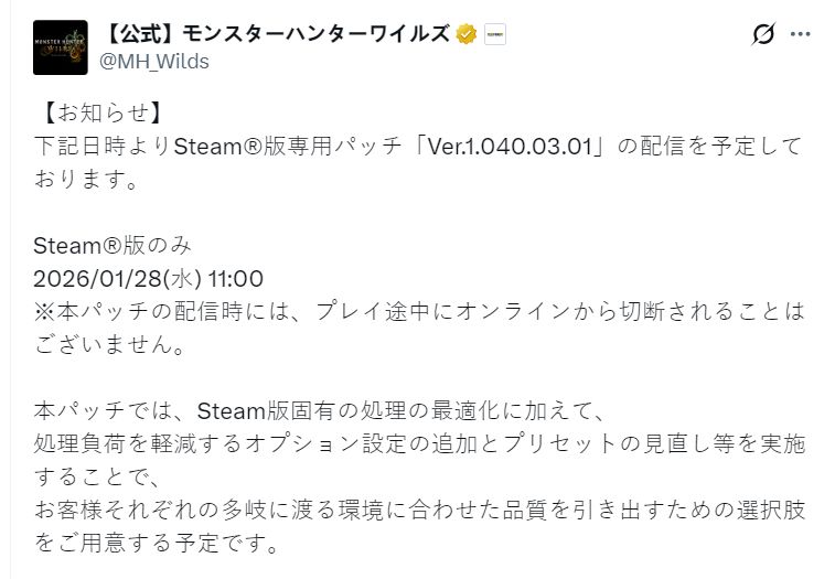 卡普空正式宣布,将于北京时间1月28日上午10点,为Steam版本推出Ver.1.040.03.01专用补丁。