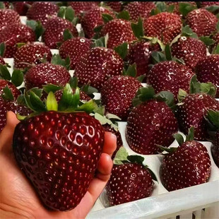 然而,今年有一款独特的草莓却在逆势之中售价高的令人咋舌,达到了160元一斤,这就是今年爆火的新品种黑草莓: