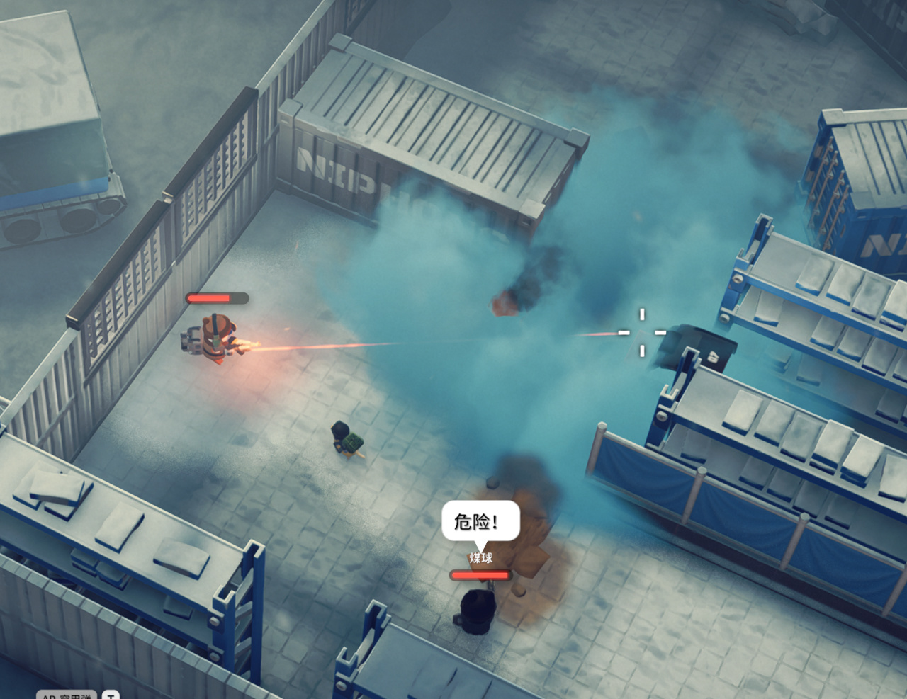 BOSS后面的集装箱有方块枪智能模组,可以让方块枪打出的子弹锁头。