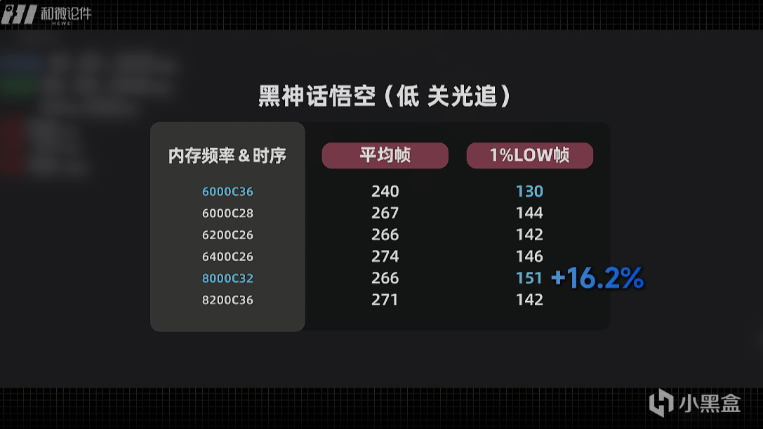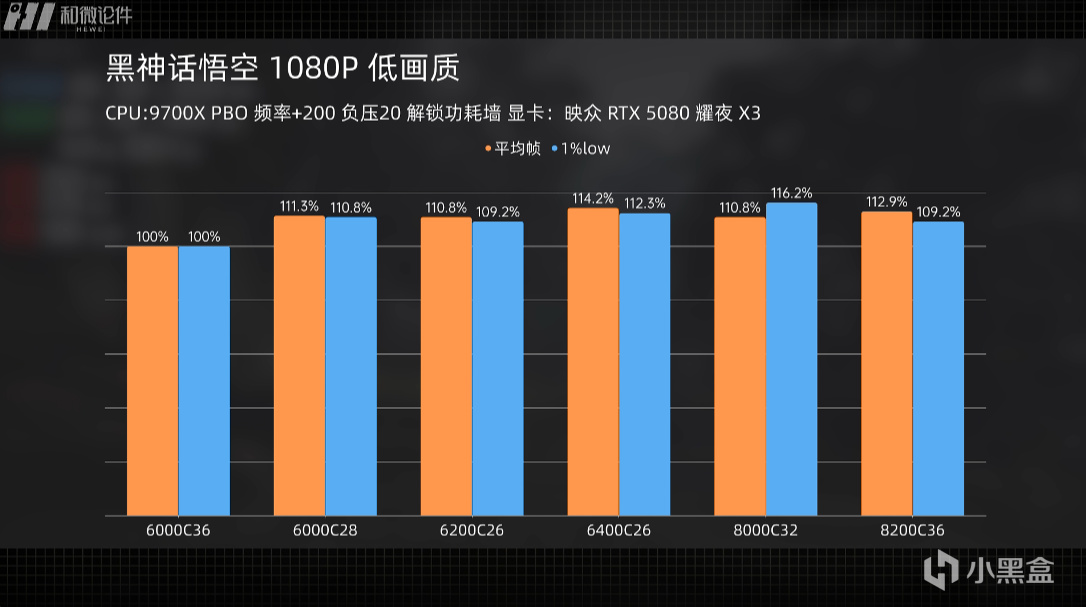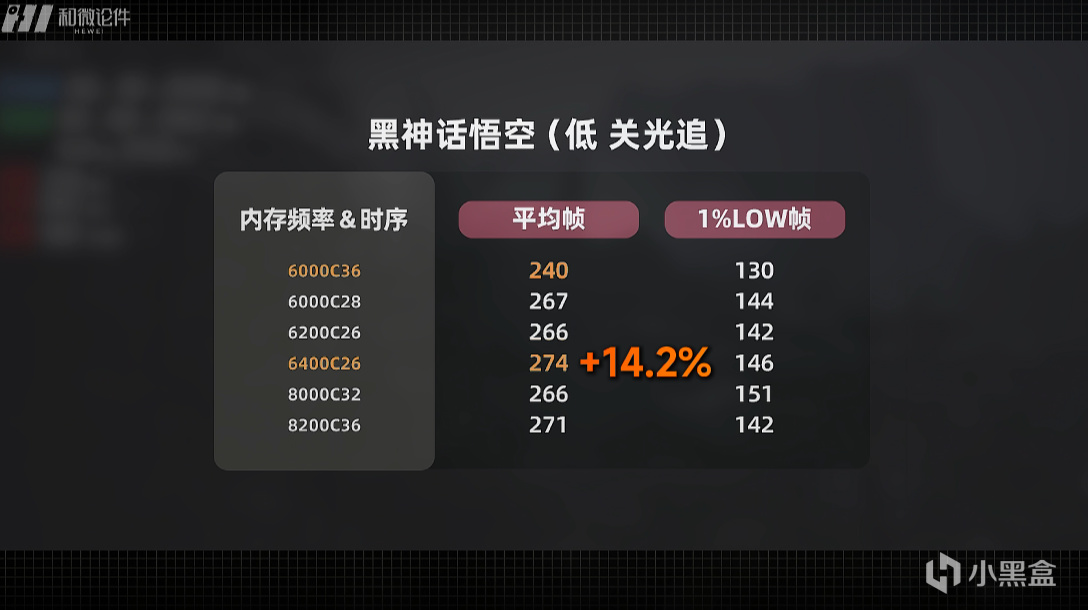 首先是黑神话悟空,以6000C36为百分比基准参数。