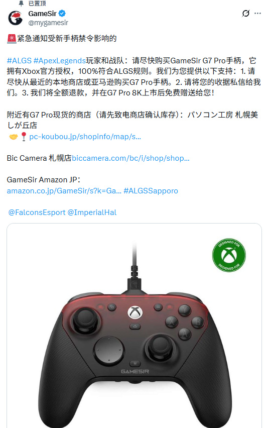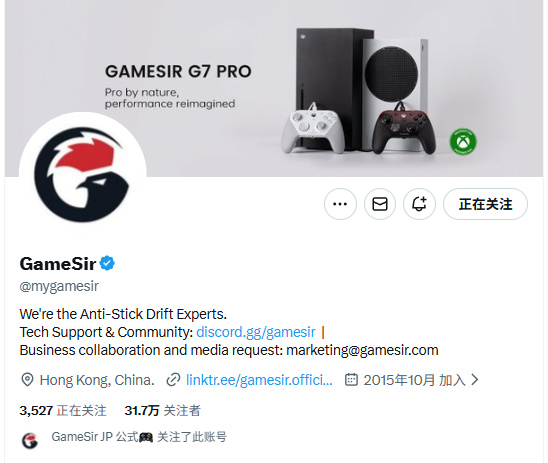 他们可以通过我们的海外官方社媒账号:@GameSirJP和@mygamesir,联系上我们。
