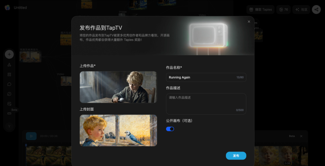 Tapnow构建了全球首个ai视频创作开源社区TapTV,可以免费观看一个个令人惊艳的视频是如何做出来的,同时学习创作者的思路,技巧。