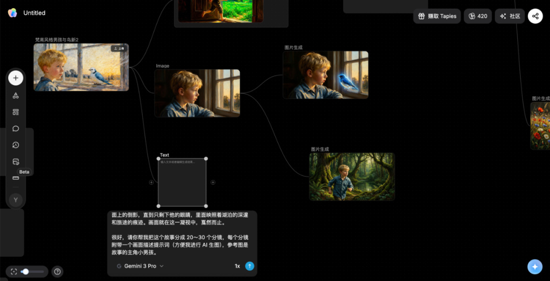 没关系,Gemini 会出手,咱们调用 Tapnow 的 Gemini3 Pro 节点。