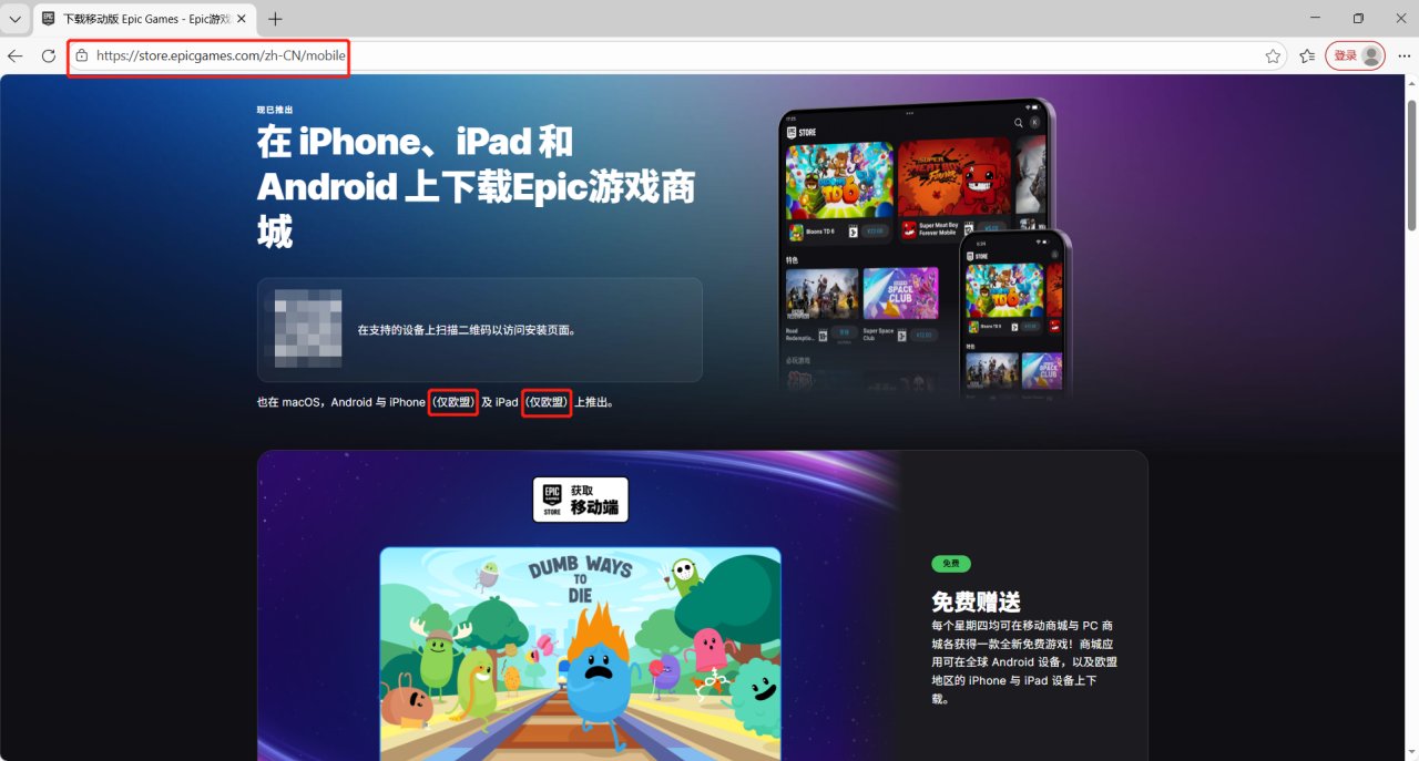 5.EPIC的APP下载链接:EPIC移动端游戏商城APP