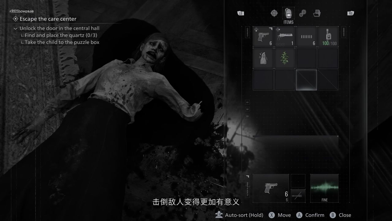 该模式采用类似经典《生化危机》作品的难度设定,为系列老玩家推荐的游玩方案。格蕾丝流程中的自动存档将受限,且需消耗墨带进行手动存档。