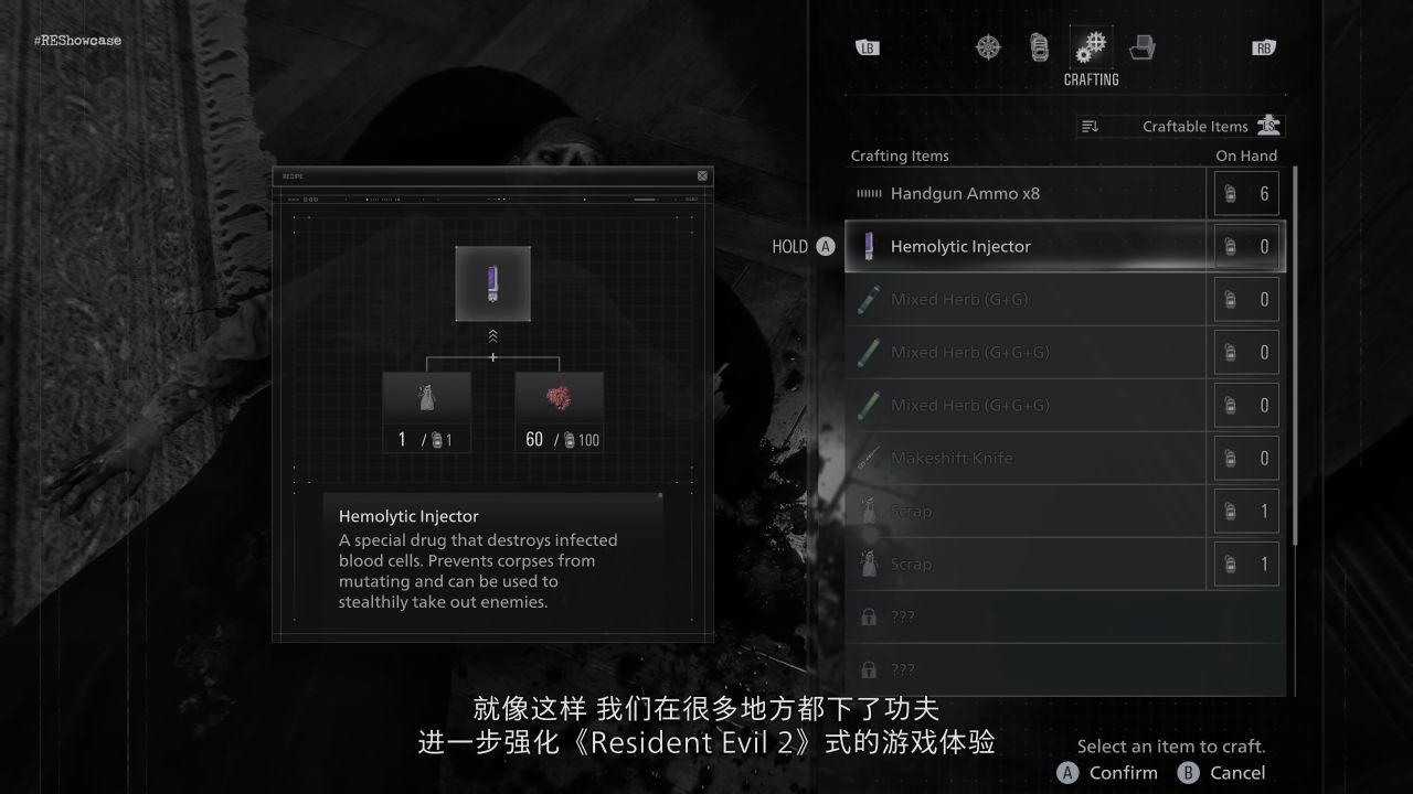格蕾丝可以利用感染者的血液合成治疗物品与弹药,甚至还能制作一击必杀的特殊注射器。