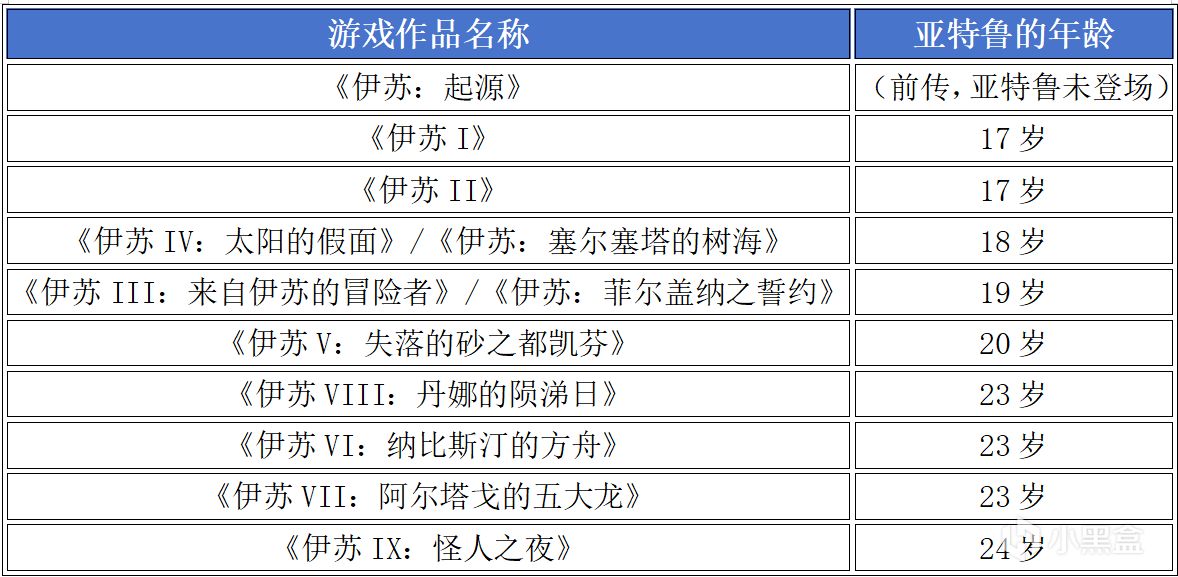 历代作品中亚特鲁的推测年龄,可以看出历代作品并不是严格按照时间顺序来的