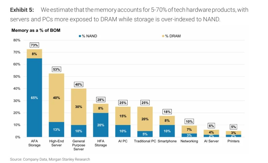 这些涨幅并非孤例。日本秋叶原地区的零售商如Sofmap甚至开始高价收购二手PC,以缓解新品短缺。 一些店铺已暂停2026年前的定制PC订单,预计整体PC市场销量将下降5%-9%。以下是更多价格趋势图示: