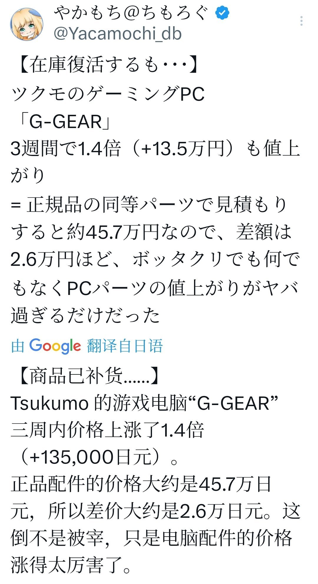 在日本市场,PC硬件价格的上涨已成为玩家热议焦点。以知名零售商Tsukumo为例,其旗下整机组装品牌G-GEAR的售价在短时间内大幅波动。根据最新数据,部分G-GEAR型号的价格已接近44万日元,而类似配置在短缺前可能更低。玩家反馈显示,短短三周内,整机售价可涨至原价的1.4倍,涨幅约13.5万日元,这与全球内存短缺直接相关。许多网友在社交平台上吐槽“PC硬件涨价太疯狂了”,并分享价格变动记录。