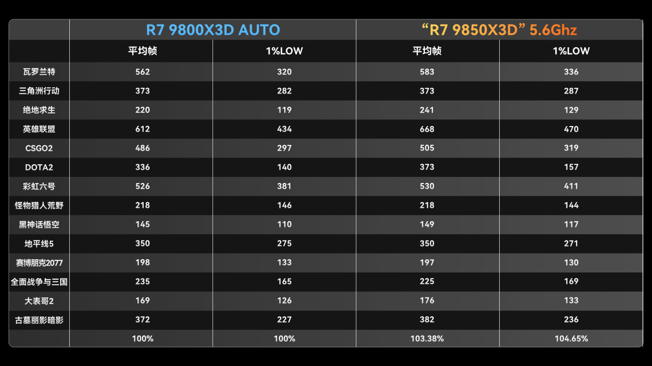 天塌了呀兄弟们!“9850X3D”比9800X3D打游戏多了50多帧?