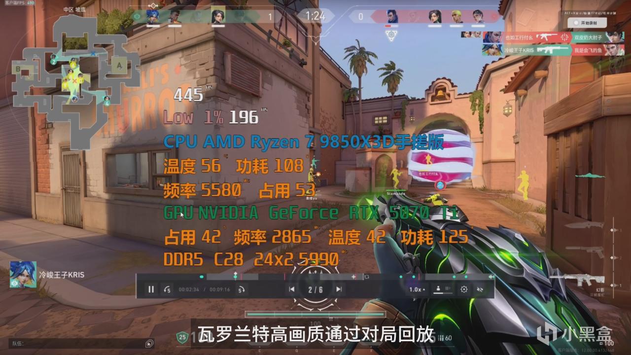 第一款游戏,瓦罗兰特高画质通过对局回放。手搓版比9800X3D平均帧高了20左右,Low帧高了16帧 提升“巨大”。