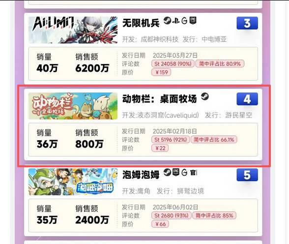 前有冲进国产游戏2025年上半年销量榜前10的《动物栏:桌面牧场》,后有入围Steam大奖的《放松时光:与你共享Lo-Fi故事》,都用简单的玩法拿下了不俗的销量。