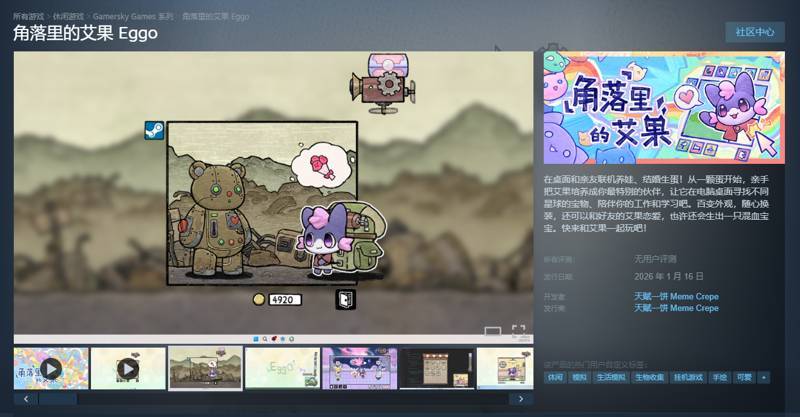 它就是《角落里的艾果 Eggo》,一款即将于1月16日正式发售的放置养成类桌面宠物游戏。靠着精致而独特的美术风格与线上联机交友的强社交属性,获得了许多萌系爱好者的关注与支持。