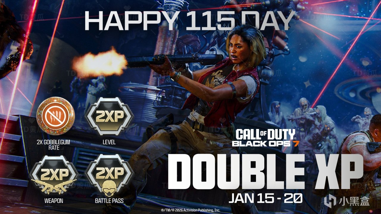 爲慶祝“115殭屍日”,現已開啓四重雙倍經驗,持續5天至1月21日凌晨2:00,涵蓋等級、武器、通行證和泡泡糖獲取率。