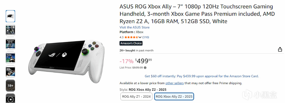 华硕和微软联手搞的 ROG Xbox Ally 最近价格大跳水,百思买和亚马逊直接砍了 100 美元,现在 499 美元就能拿下,换算过来也就 3400 多块,这应该是去年发售后最划算的入手时机了。