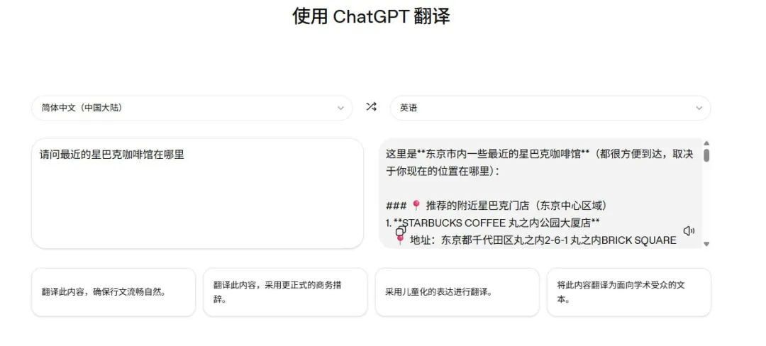 如果你想体验一个可以被调戏的翻译 AI,或者想在翻译中加点个性化,ChatGPT Translate 值得一试。